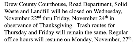 Older article: CITY OF MONTICELLO Thanksgiving Schedule.