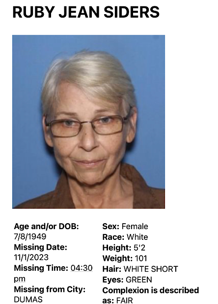 DUMAS POLICE DEPARTMENT Silver Alert.- 382-5511