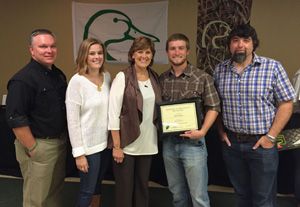 Ethan Massey of Baton Rouge, La., a graduate student in the School of Forestry and Natural Resources at the University of Arkansas at Monticello, is the first recipient of the Dr. Robert H. Burch, Jr., Waterfowl Research endowment. The award was presented last week at the annual Drew County Ducks Unlimited banquet held at the Monticello Country Club.
