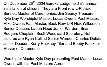Eureka Lodge 2025 Officers