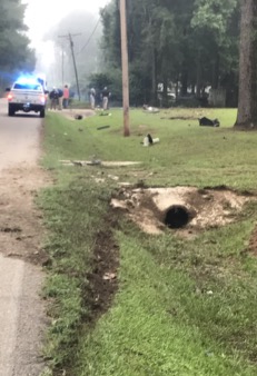 Around 12:30 AM, the driver of a Pontiac G6 lost control of his vehicle, as he was traveling westbound. The car entered the north ditch, before colliding with a concrete driveway. The vehicle began flipping and ejected the driver, who was killed on impact. After striking a tree, the Pontiac came to rest in another nearby yard.
