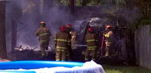 The shed seems to be a total loss.