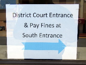 Signs have been posted, previously, identifying the court’s entrance as the back of the building; but limited parking and no seating often cause increased use of the front entrance.