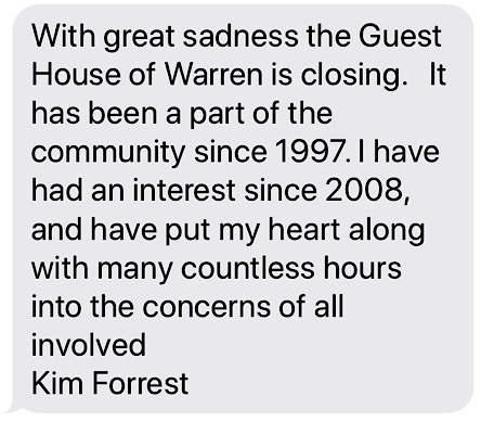 Residents of Guest House of Warren received notification (most on Monday of this week), telling them that they must vacate the premises, by Friday (today).