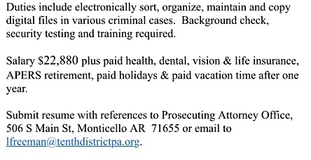 HELP WANTED – DIGITAL EVIDENCE CLERK (FULL-TIME POSITION AVAILABLE JAN 15)