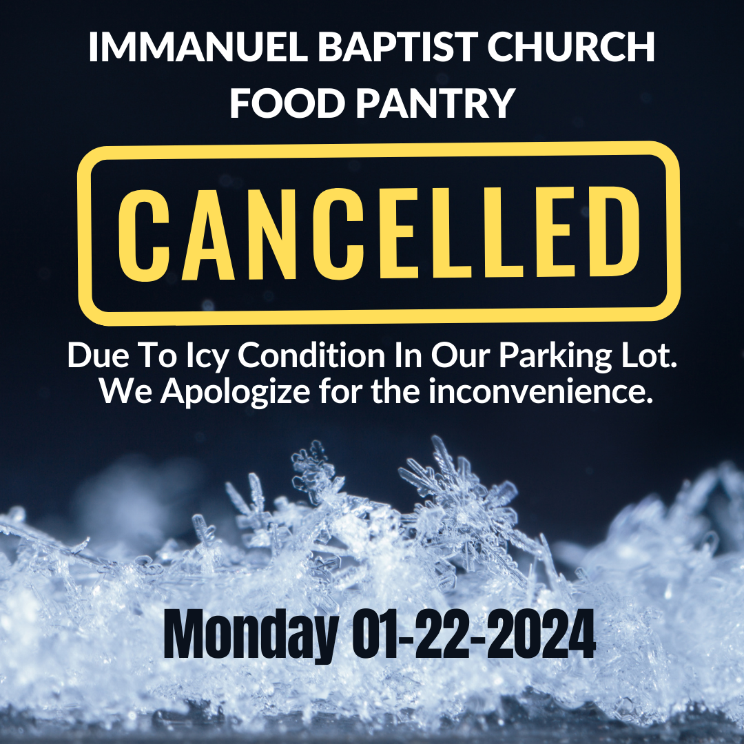 Immanuel Baptist Church Food Pantry Cancelled For Monday 01-22-2024