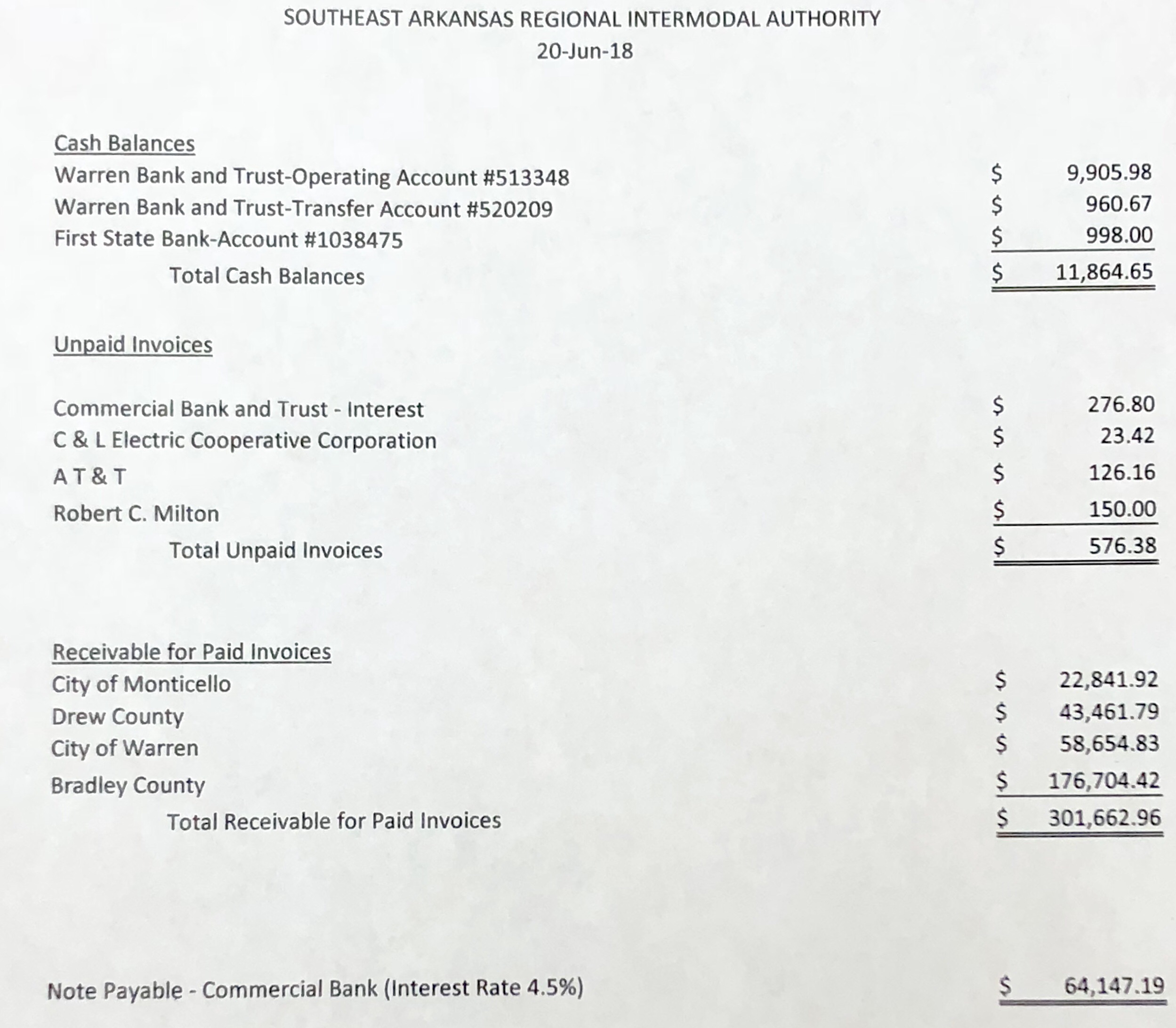According to reports from Wednesday’s meeting, the previous owners of Arkansas Midland Railroad did not get approval from Union Pacific to install the crossing of the intermodal access road, before authorizing the intermodal authority to build the road across the track at its current location and where to install the switch.