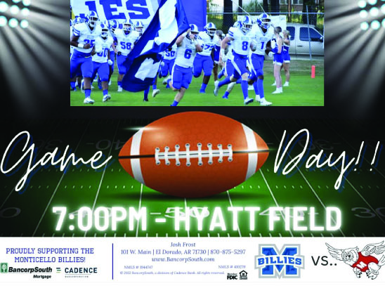 It’s Game Day, BancorpSouth/Cadence Proudly Supporting Your Monticello Billies