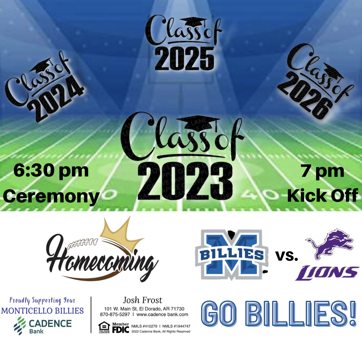 It’s Homecoming Game Day, BancorpSouth/Candence Proudly Supporting Your Monticello Billies