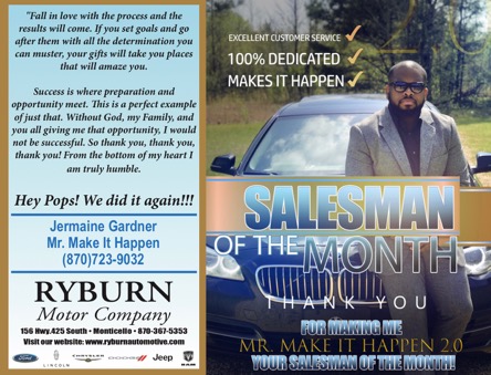 Jermaine Gardner, Salesman of the Month at Ryburn Motor Co.