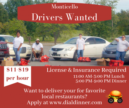Join the Dial Dinner team! Lunch & Weekend Drivers Needed.