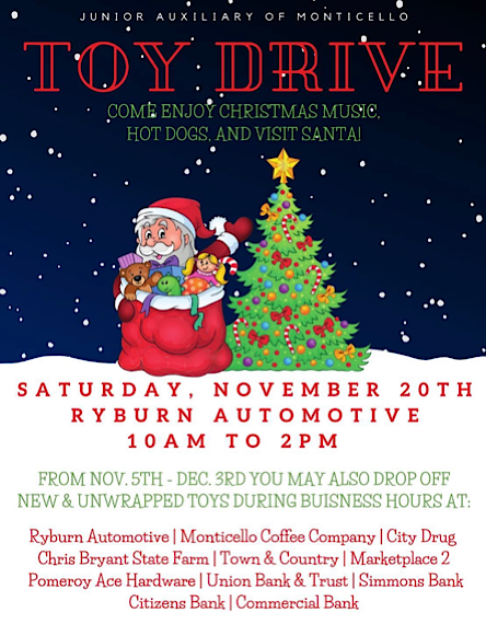 Junior Auxiliary Toy Drive, Saturday, November 20 at Ryburns