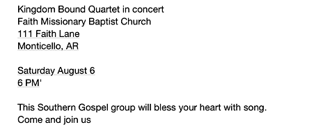 Kingdom Bound Quartet in Concert at Faith Missionary Baptist, Saturday