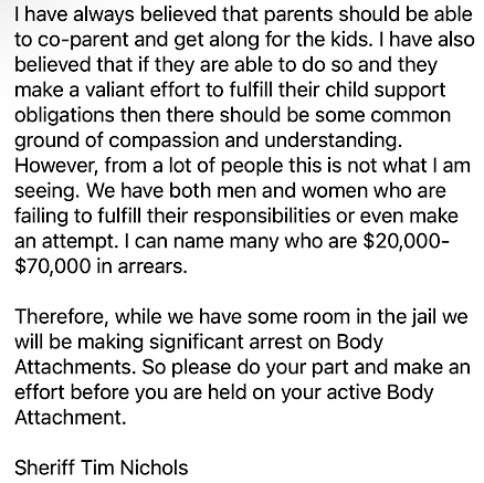 Letter about Child Support from Sheriff