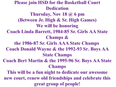 Lions Bktball Court Dedication, Thursday, Honoring State Championship Teams