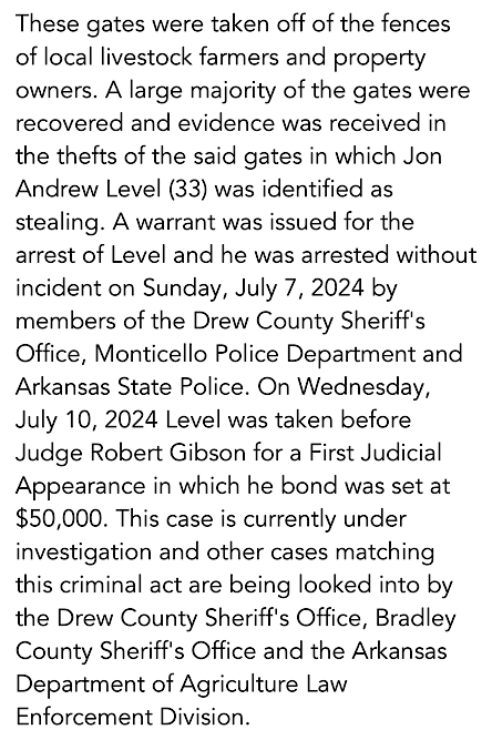 Local Cattle Gate Theft Arrest by DCSO