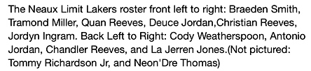 division championship as well. Antonio Jordan and Tramond Miller were named Co-MVPS of the 11th grade division. Tramon Miller Jr. was named championship MVP, scoring tournament high 36 points. Antonio Jordan was division’s leading scorer, rebounder and shot blocker. He was also named player of the game a division high three times. This local team includes players from Monticello, Warren and Rison.