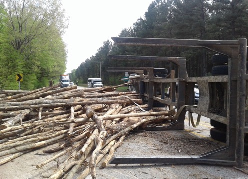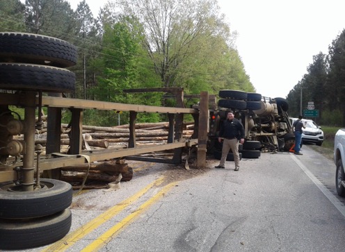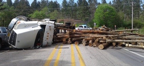 Log Truck Overturns – Photos