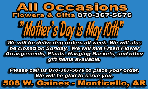Looking For Mother’s Day Gift? Call All Occasions Flowers & Gifts at 508 W. Gaines