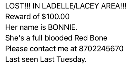 Lost. Pet, Lacey-Ladelle Area