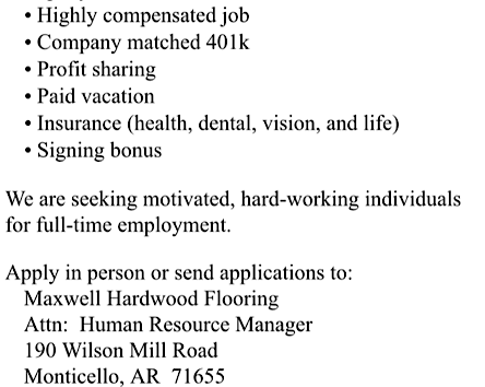 Maxwell Hardwood Flooring Seeking Shipping Supervisor.
