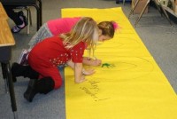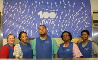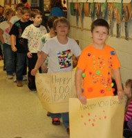 The celebration “kicked off” with a 100 Days T-shirt parade through the halls of the school. Students then went back to their classrooms to participate in a variety of activities centered around the number 100. At lunch time, the 100th student that went through the line for each grade level was awarded a prize. Everyone joined in the celebration, including the cafeteria employees!