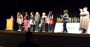 Advancing to finals and their awards were the following events: Finalist – Readers Theatre; Finalist – Prose Interpretation – Jasmine Wilkerson; 3rd place – Duet Acting – Zach Cason & Mary Kate Jones; 2nd place – Mime – Zach Cason, Savannah Reynolds, & David deRueda; and 2nd place – Improvised Duet Acting – Rian Meeks & Joseph James.
