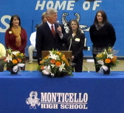 With little hesitation, Governor Beebe quickly announced that the real reason for the meeting was to present Kimberly Wilson as Teacher of the Year. Mrs. Wilson is a visual art teacher at MHS.
