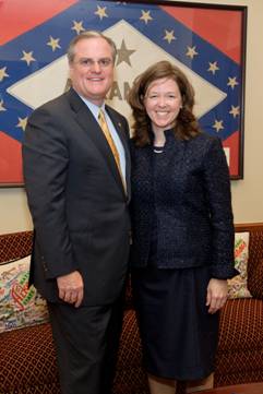 Senator Pryor congratulates Kim Wilson, a visual art teacher at Monticello High School, on being chosen as Arkansas’s Teacher of the Year.