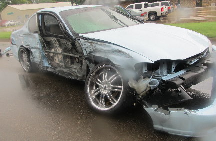 The driver of this Chevy Monte Carlo was southbound, Thursday around 11:45, when the vehicle hydroplaned, spinning around, and crossing into the northbound lane.