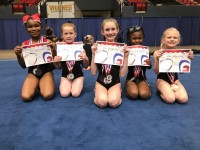 Gymnasts compete at their appropriate level. We had Gymnasts compete in levels 1 through 3. Our next meet will be February 22-24 in Sheridan and we will have levels 1 through 4 competing at that meet.