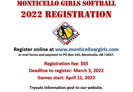 MONTICELLO GIRIS SOFTBALL REGISTRATION UNDERWAY