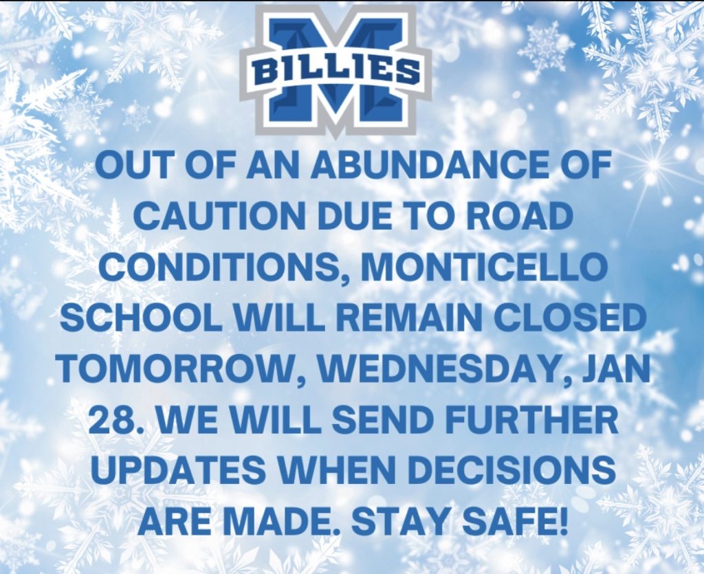 Monticello Schools Closing, Wednesday