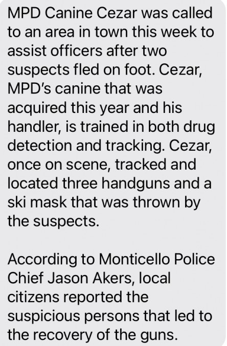 Great job Officer Cezer!! Three guns are off the streets of our hometown thanks to you and your handler!