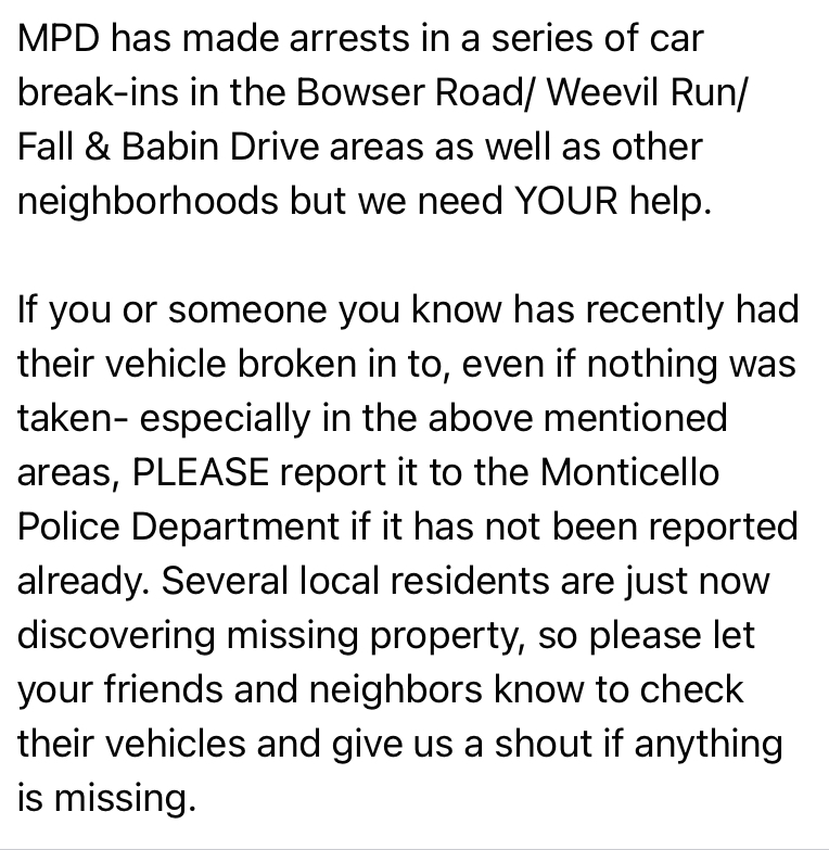 Jacob DerryLast week, MPD brought in into a series of car break-ins, across multiple neighborhoods in Monticello.