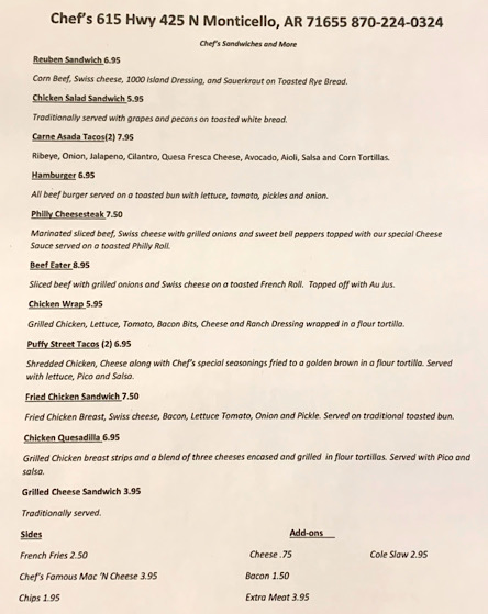 New Lunch Menu at Chef ‘s- Print the New Menu!!