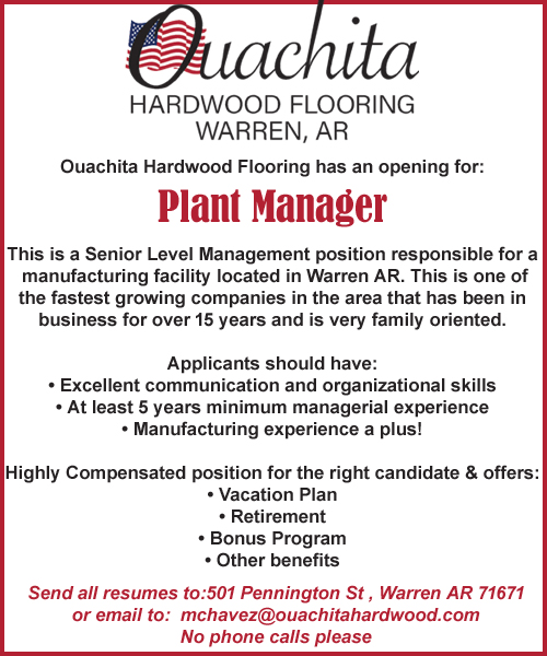 Ouachita Hardwood Flooring In Warren Looking For Plant Manager