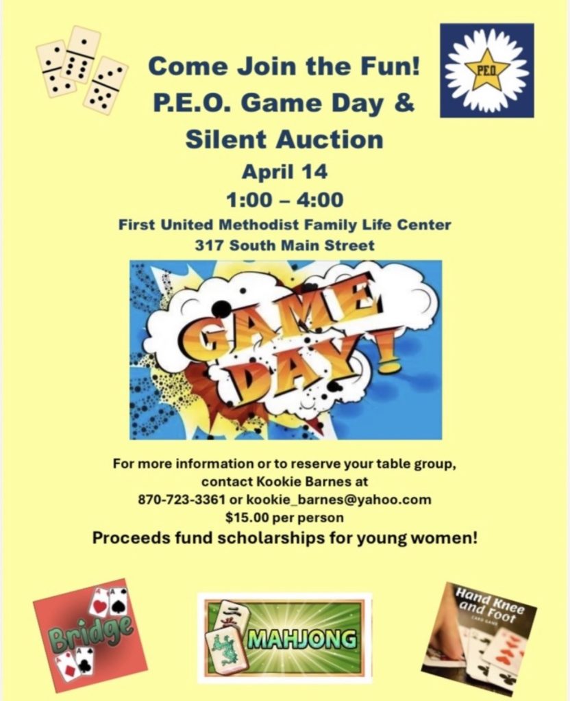 P.E.O. Game Day & Silent Auction, April 14