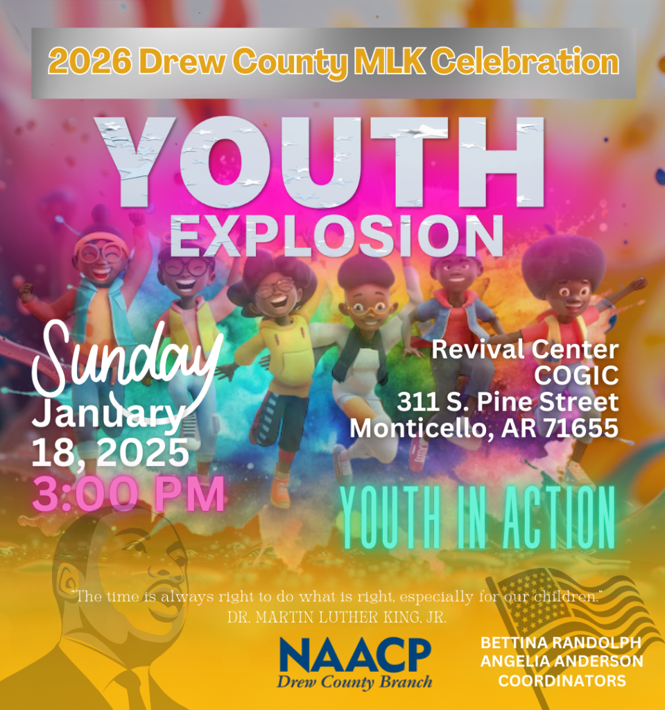 The NAACP Drew County Branch is proud to announce its annual Martin Luther King Jr. Celebration, featuring a comprehensive summit and community service activities designed to honor Dr. King’s legacy through action and education.