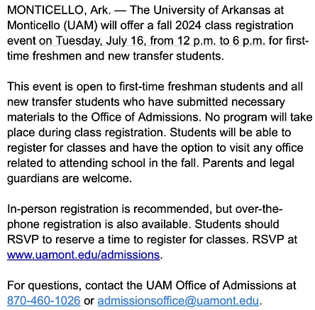 The University of Arkansas at Monticello (UAM) has awarded its inaugural UAM Innovation Grant of $10,000 for the proposed UAM Virtual Center for Innovative Teaching and Learning. Read the rest of this entry »