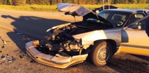 imageAround 9:15, Tuesday night, the driver of this Toyota Avalon lost control of the vehicle as it was the northbound on Highway 83 near Coleman. The road had recently been covered with pea gravel for maintenance.