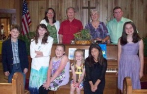 Front Row: Blake Middlebrooks, Jessica Beaty, Meredith Maynard, Hannah McAlpine, Kaia Young, Christine Bostian. Back Row: Tina Bostian, James Cathey, Joyce Pevey, Arnold Tullos. Not pictured, but participated in recital are: Anna Grace Bailey, Anna Groves and Anna Lewis. Many parents, family and friends of the students were also in attendance.