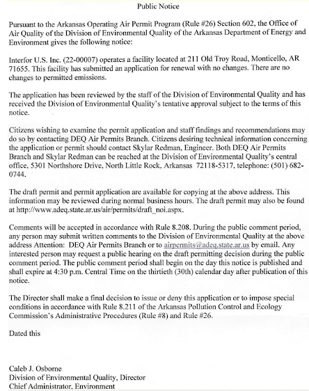 Public Notice from Drew County
