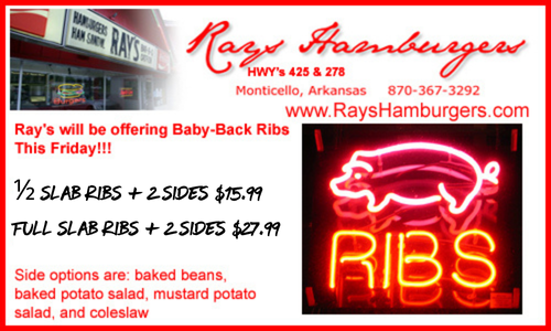 Ray’s Offering Baby-Back Ribs This Friday!!!