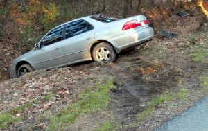 This Honda Accord received only minor damage, Wednesday around 5 pm, when it’s driver lost control on the wet pavement in Dead Man’s Curve.