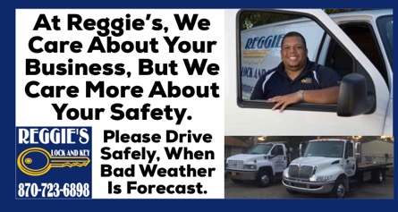 Reggie’s Wrecker, “Bad Weather is Forecast; Please Drive Safely.”