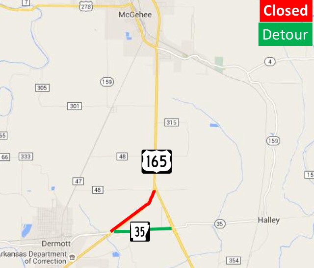 Improvements to Highway 165 will require a partial closure northeast of Dermott, according to AHTD officials.