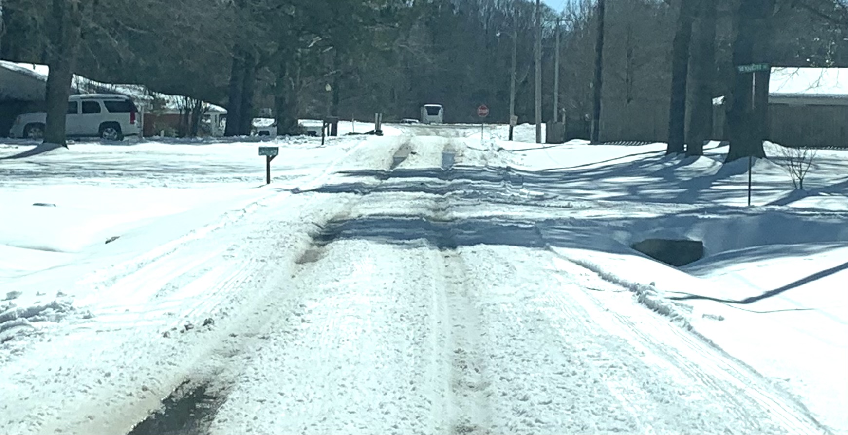 Non-highways, like Meadowview Drive in Western Pines, are very slick and slushy.