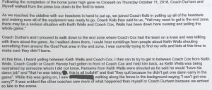 Comments included in the statements refer to Wells’ cursing the coach and threatening to have the coach fired from his position.