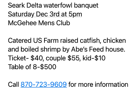 Seark Delta Waterfowl Banquet, Saturday, Dec 3rd